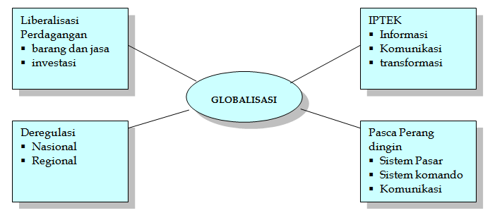 Proses membuat ketergantungan negara bekembang dri negara maju”. Dari pengertian-pengertian tersebut selanjutnya sanggup diketahui Faktor-faktor pendorong globalisasi, dampaknya serta tantangan globalisasi menyerupai dijelaskan dalam perkuliahan. Faktor pendorongnya, berdasarkan Engking sanggup digambarkan sebagai berikut :